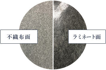 ヨゴレンテの表面は不織布という非常に通気性の良い素材を使っています。汚れてしまった場合は、手洗いして頂き一日干すと再利用できます。光沢のある裏面は遮水ラミネート加工がされています。